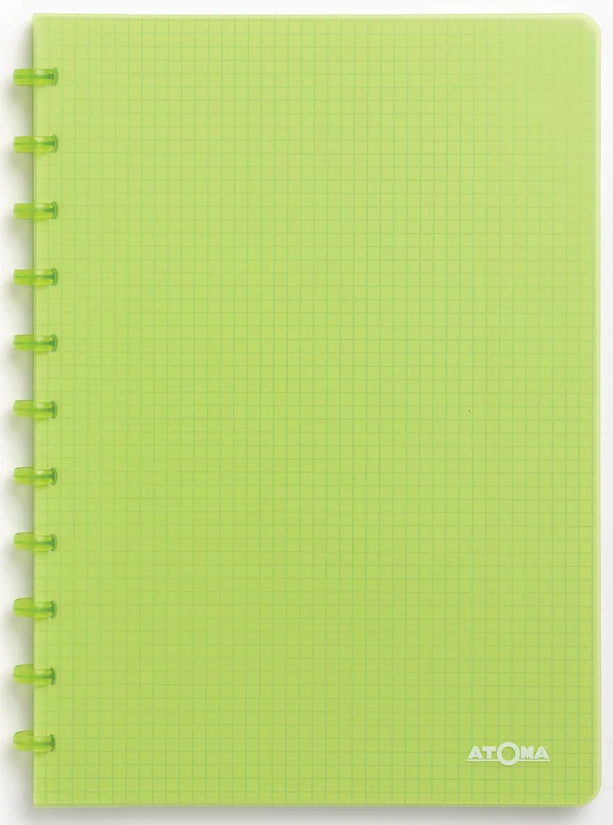Papier van 90 g/m². 144 bladzijden (72 vel). Kaft uit recycleerbaar PP. Met rode kantlijn. FSC-gecertificeerd.