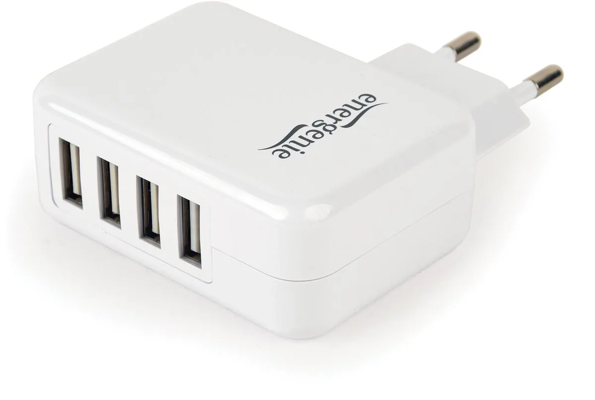 Met deze lader laad je tot wel 4 apparaten tegelijk op. 4-poorts USB-lichtnetadapter (15W). Beveiligd tegen stroompieken en kortsluiting. Ft 8,6 x 6,5 x 3 cm (h x b x d). Kleur: wit.
