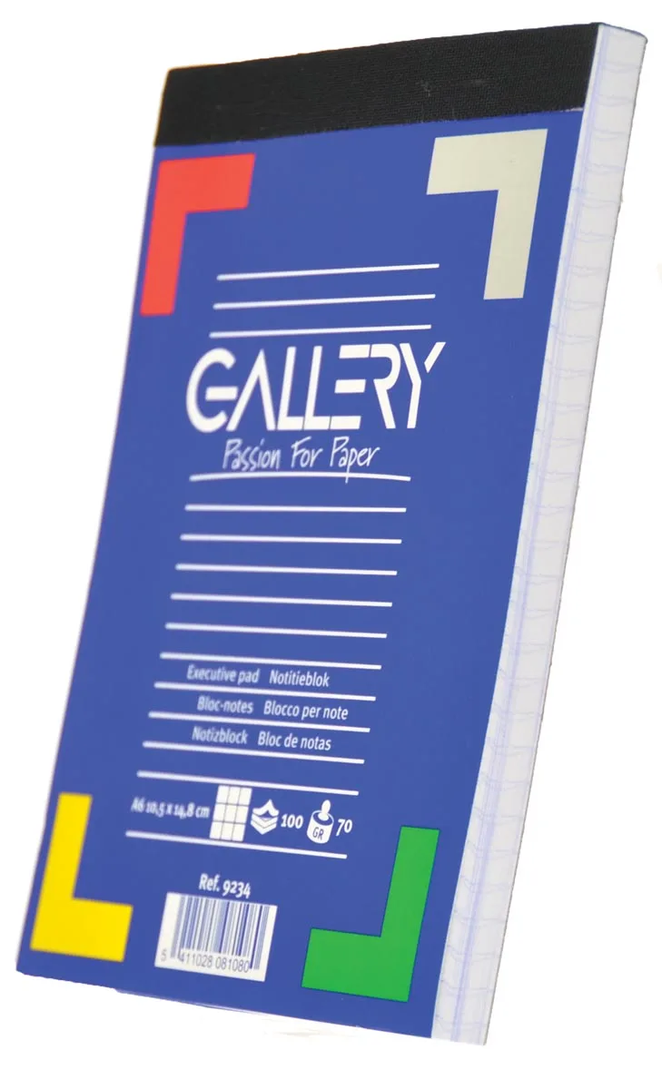Gallery notitieblok, ft A6, geruit 5 mm, blok van 100 vel€0,86 ex. BTW per stuk