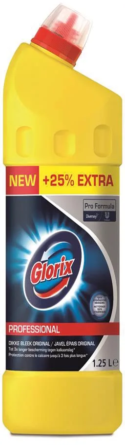 GLORIX TOILETREINIGER 1,25L is een krachtige toilet schoonmaakoplossing die 99,9% van de bacteriën doodt. Het zorgt voor een diepe reiniging van het toilet en laat een frisse geur achter. De formule hecht zich aan de toiletwand voor een langdurige werking.