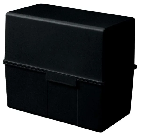 Capaciteit: 300 tot 450 kaarten. Uit kunststof. Het deksel kan volledig opengeklapt worden, waardoor de capaciteit verdubbeld wordt. Systeemkaarten niet ingebrepen.