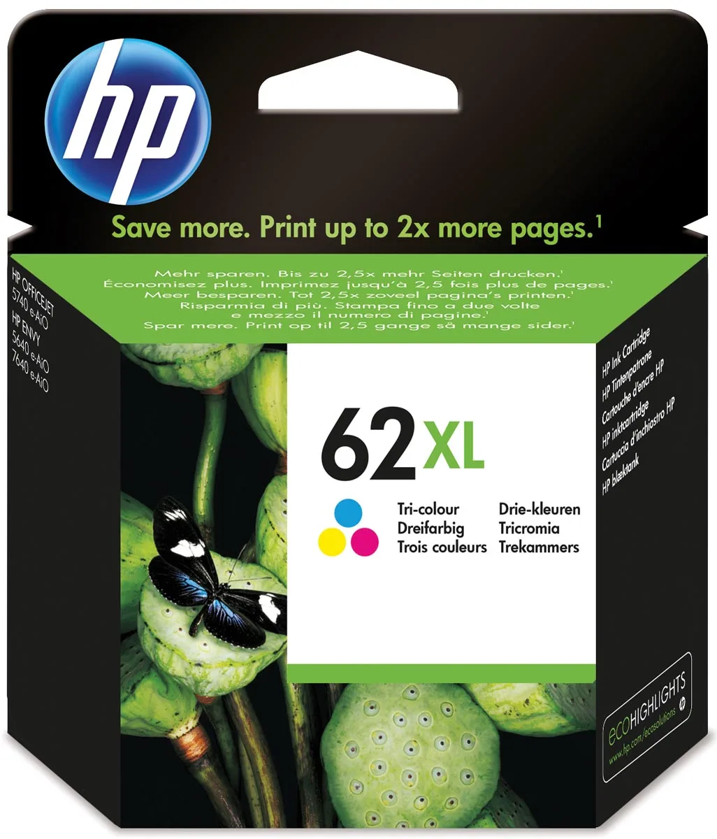 De HP inktcartridge 62XL, 415 pagina’s, OEM C2P07AE, 3 kleuren is voor zowel thuis- als zakelijk gebruik en biedt een indrukwekkende paginarendement van 415 pagina’s. Bovendien bevat dit pakket 3 kleuren (cyaan, magenta en geel). Investeer in de HP 62XL-inktcartridge voor heldere, consistente afdrukken van hoge kwaliteit die lang meegaan.