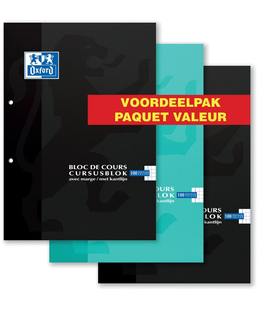 Oxford cursusblok voordeelpak van 3 stuks, geassorteerde kleuren, ft A4, 100 vel, geruit 5 mmBeschikbaarheid: 140 op voorraad