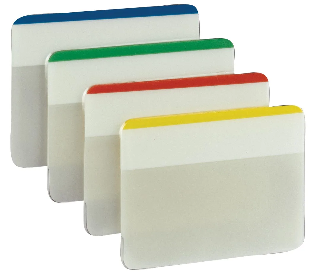 Post-it Index Strong, 50,8 x 38 mm, voor ordners, set van 24 tabs, 4 kleuren, 6 tabs per kleur. Voor archief en klassement. Ideaal om aantekeningen van elkaar te scheiden, voor harmonica- en projectmappen.