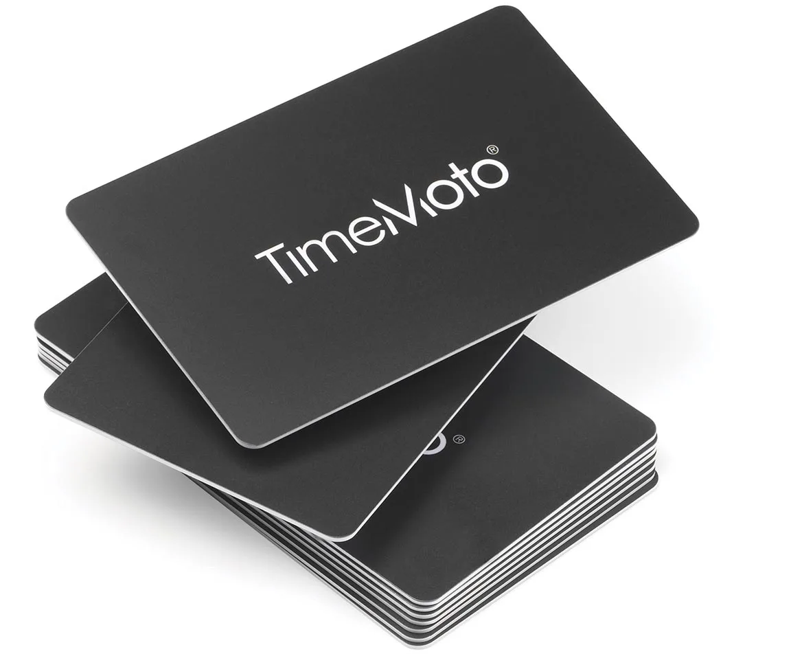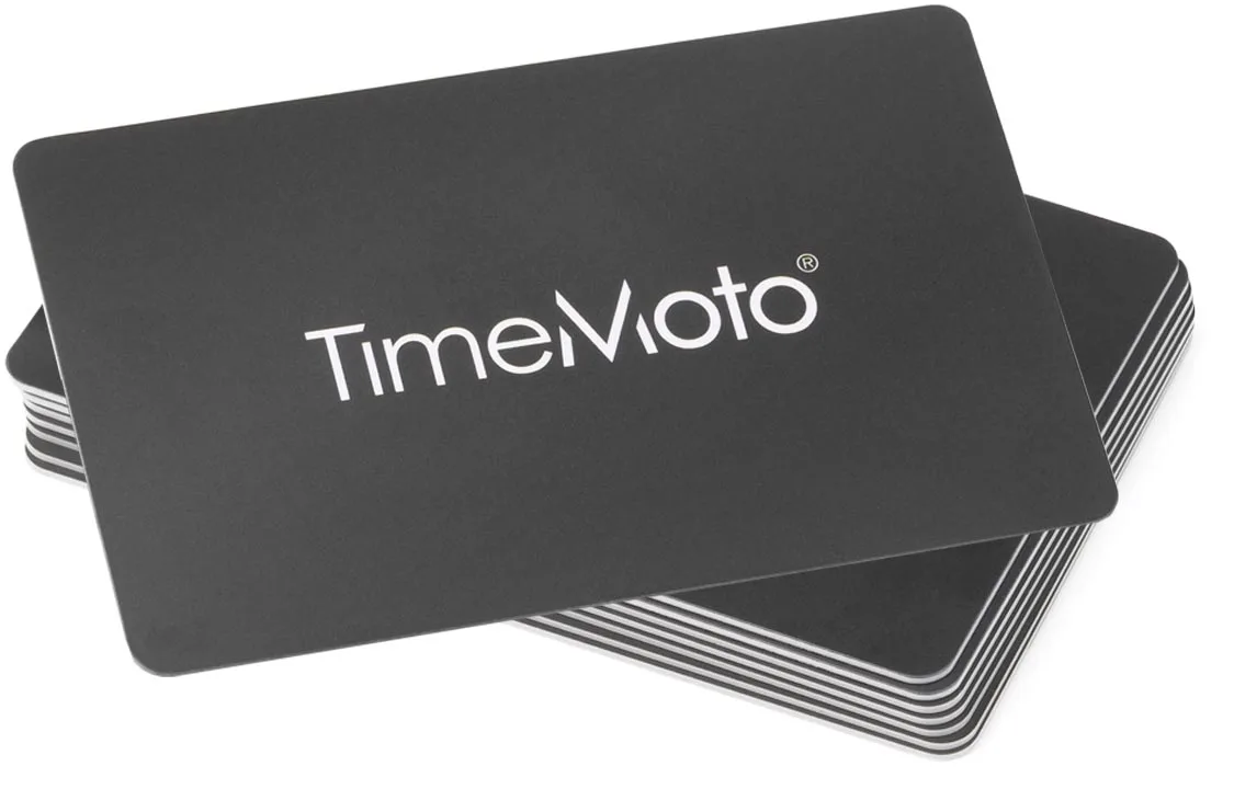Set van 25 badges RFID proximity badge 125kHz Leesafstand: 7 cm Afmetingen product: 8.5 x 5.4 cm Gewicht: 5 gr Compatibel met alle RFID-enabled TimeMoto systemen